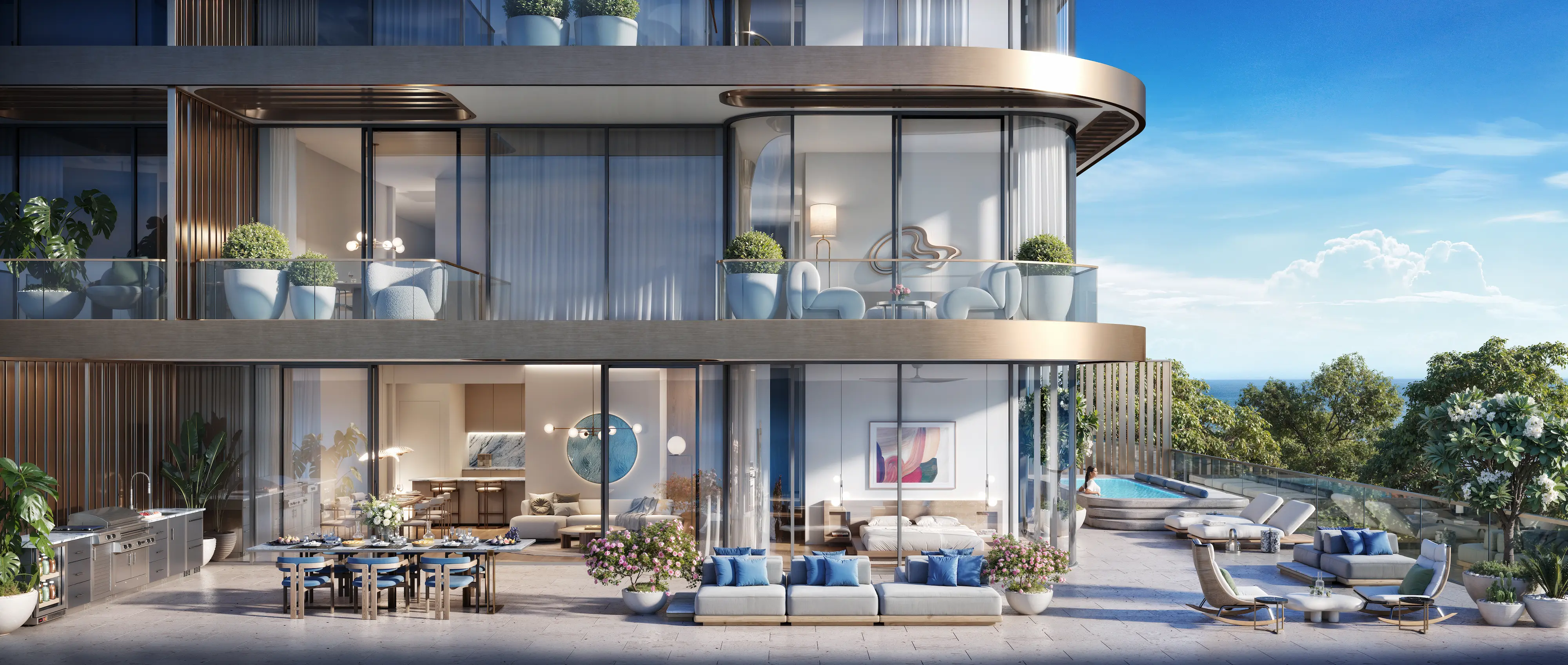 Premium finishes frame Dubai's dynamic skyline and endless sea horizons, where Mediterranean-inspired mornings transition to colour-drenched evenings—and luxury is measured in moments perfectly savoured.